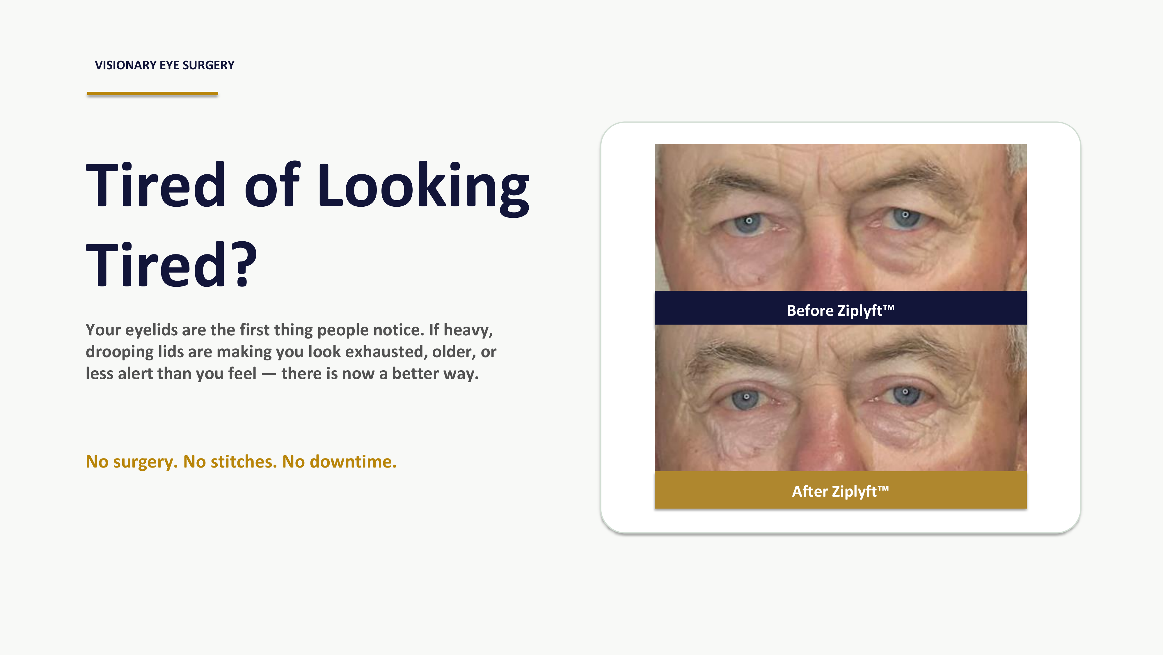 ZipLyft is visual by nature. Patients need to see what a lighter, more open upper lid can actually look like.